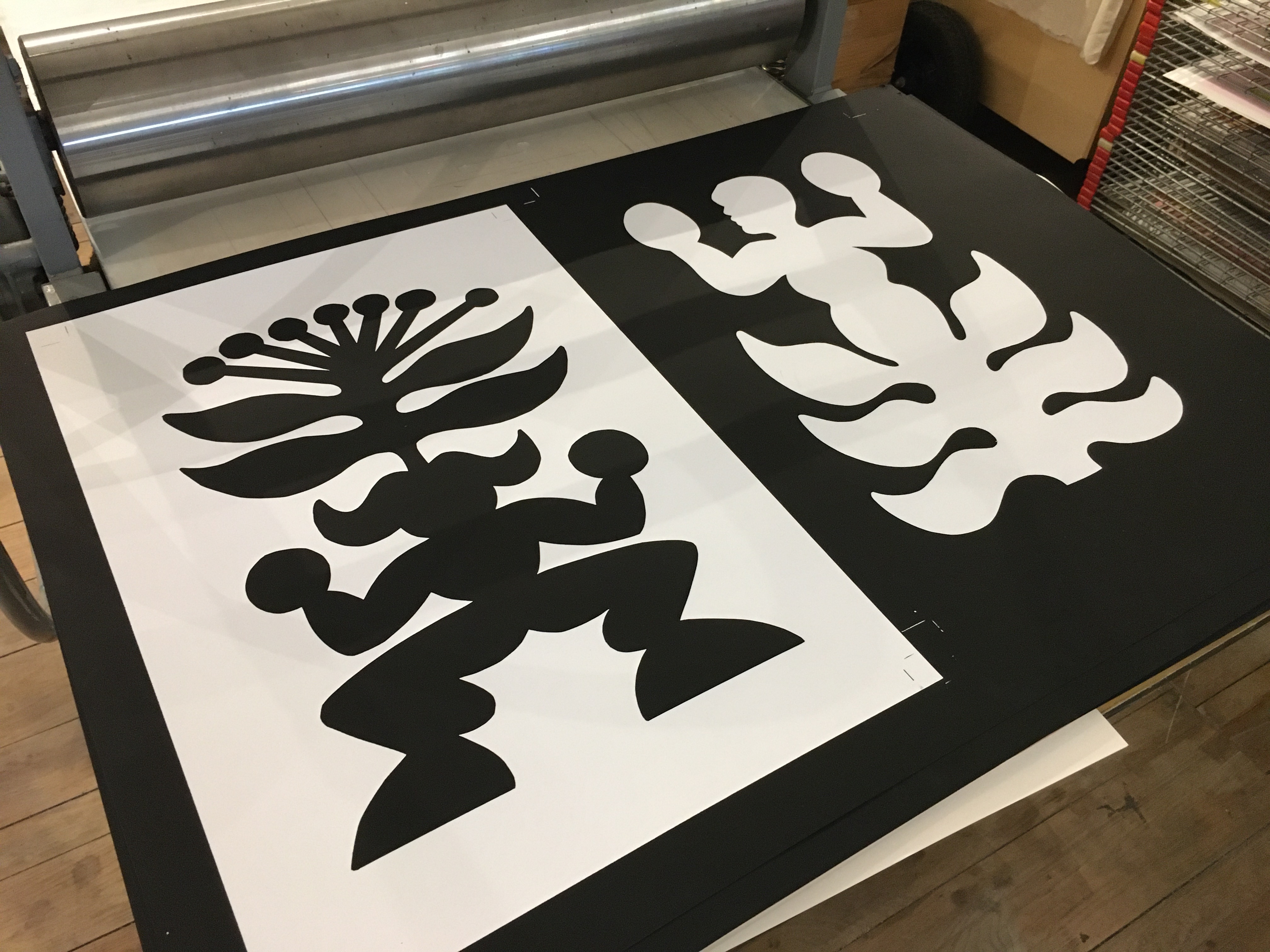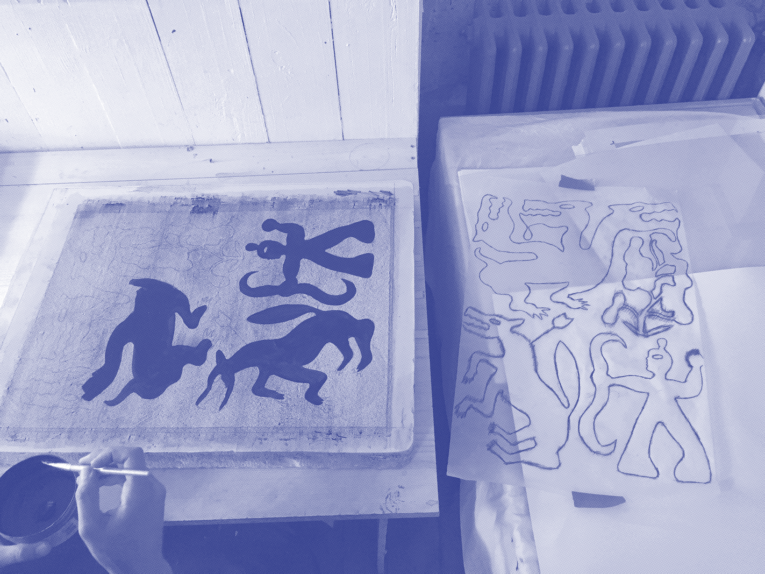 Les résidences de production proposent d’accompagner un artiste dans la réalisation d’un travail d’impression sur du court terme. L’artiste utilise l’atelier, son matériel, ses consommables, ainsi que notre accompagnement pour créer un travail personnel.