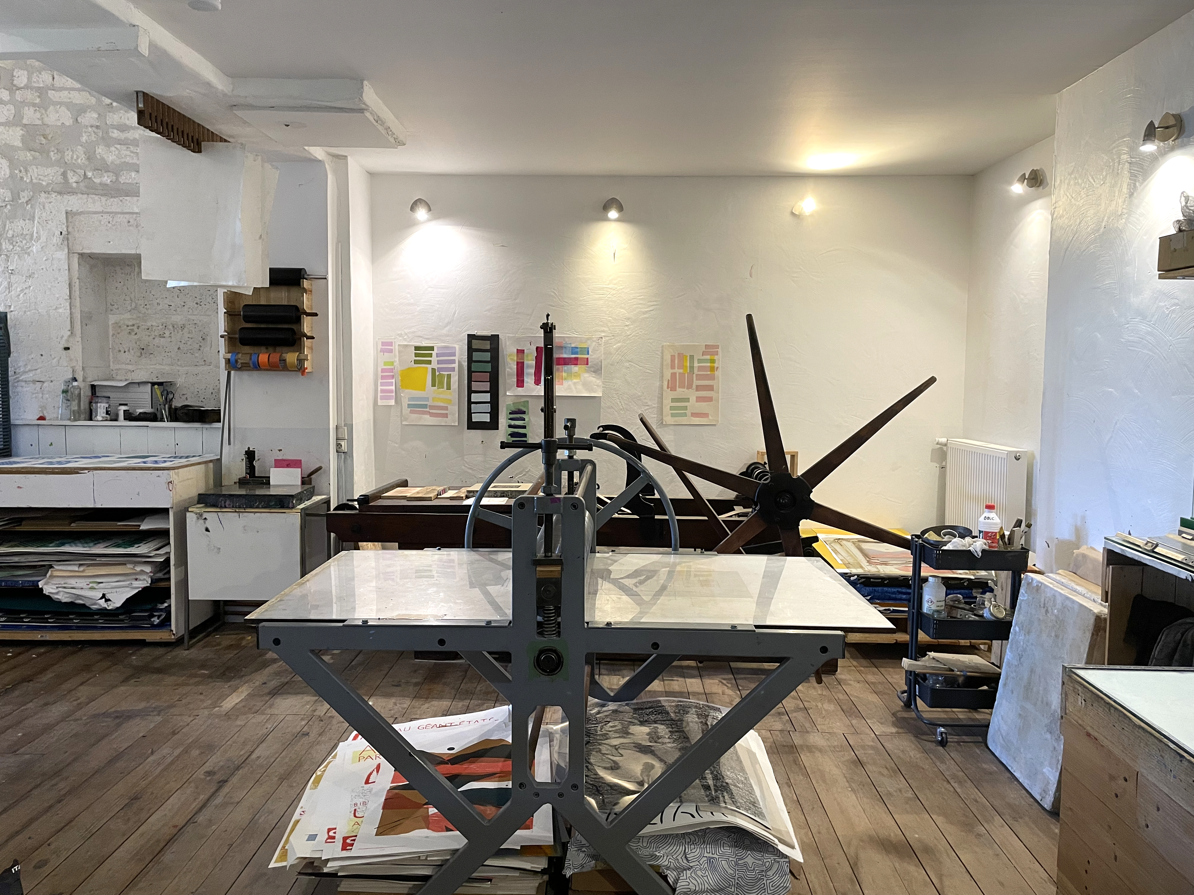 Nous travaillons avec différents artistes et auteurs, directement sur place pour réaliser des estampes en gravure, en lithographie traditionnelle sur pierre et/ou en sérigraphie.